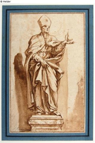 Fundmeldung Statue eines Bischofs Hersteller/Künstler:in Boucher, François Objektart Zeichnung Material / TechnikPapier / gezeichnet (Feder) ; laviert ; gezeichnet (Pinsel)Lost Art-ID569028
