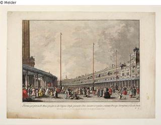 Fundmeldung Fronleichnamsprozession auf dem Markusplatz Blatt 9 aus der Folge "Le Feste Ducali" Hersteller/Künstler:in Brustolon, Giovanni Battista Hersteller/Künstler:in Canaletto, Antonio Objektart Druckgrafik Material / TechnikPapier / gedruckt (Kupferstich) koloriertLost Art-ID617612