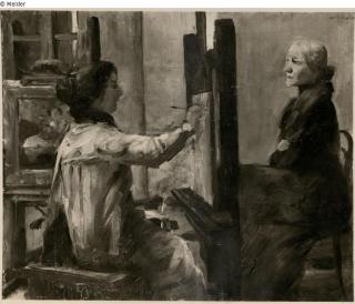 Fundmeldung Die Malerin Charlotte Berend an der Staffelei Hersteller/Künstler:in Corinth, Lovis Objektart Gemälde Material / TechnikÖl ; Leinwand / gemaltLost Art-ID580706