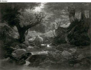 Fundmeldung Waldbach, im Hintergrund Hirsche Hersteller/Künstler:in Dahl, Johan Christian Clausen Objektart Malerei Material / TechnikÖl ; Leinwand / gemaltLost Art-ID220773