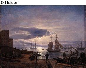 Fundmeldung Der Kopenhagener Hafen im Mondschein Hersteller/Künstler:in Dahl, Johan Christian Clausen Objektart Gemälde Material / TechnikÖl ; Leinwand / gemaltLost Art-ID577623