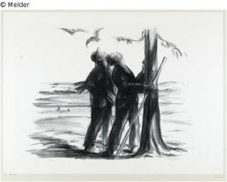 Fundmeldung Zwei Männer nach Vogelnestern Ausschau haltend Hersteller/Künstler:in Dreher, Richard Objektart Druckgrafik Material / TechnikPapier / gedruckt (Lithographie)Lost Art-ID429466