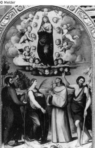 Suchmeldung Maria als Himmelskönigin Hersteller/Künstler:in Francia, Giacomo Objektart Gemälde Material / TechnikHolz (Pappel)Lost Art-ID19229