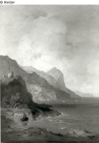 Fundmeldung Felsige Küstenlandschaft mit Kastell Hersteller/Künstler:in Fries, Bernhard Objektart Malerei Material / TechnikÖl / gemaltLost Art-ID220735