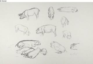 Fundmeldung Schweinestudien, Ex. 2/100 Hersteller/Künstler:in Gaul, August Objektart Druckgrafik Material / TechnikPapier (Velin) ; Kreide / gedruckt (Lithographie)Lost Art-ID319050