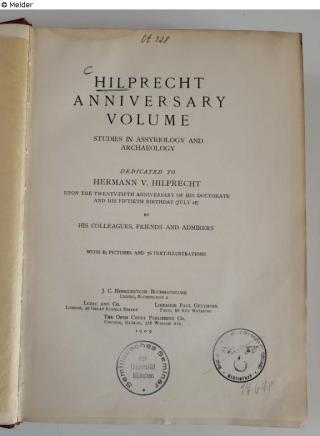 Fundmeldung Hilprecht Anniversary Volume Studies in Assyriology and Archaeology, dedicated to Hermann v. Hilprecht … Verlag Hinrich Objektart Buch Lost Art-ID634267