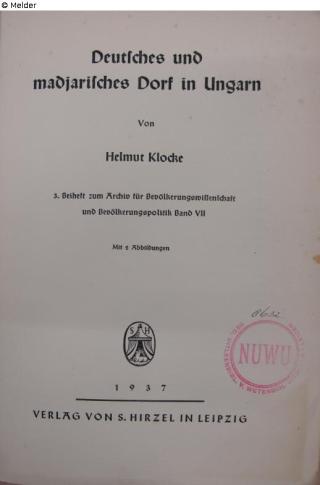 Fundmeldung Deutsches und madjarisches Dorf in Ungarn Autor:in Helmut Klocke Verlag Hirzel Objektart Buch Lost Art-ID623452