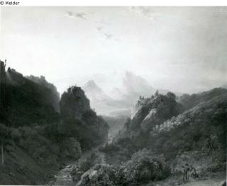 Fundmeldung Felsenlandschaft mit Stolleneingang und Kapelle Hersteller/Künstler:in Koekkoek, Barend Cornelis Objektart Gemälde Material / TechnikÖl ; Holz (Laubholz) / gemaltLost Art-ID606813