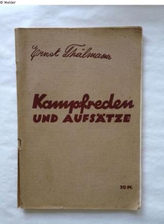 Fundmeldung Kampfreden und Aufsätze Autor:in Thälmann, Ernst Drucker:in City-Druckerei AG, Berlin Herausgeber Kommunistische Partei Deutschlands Verlag Ernst Schneller Objektart Buch Lost Art-ID520869