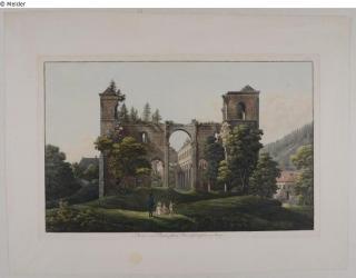 Fundmeldung Kloster Paulinzella von Westen Hersteller/Künstler:in Kraus, Georg Melchior Objektart Druckgrafik Material / TechnikPapier ; Tusche schwarz / gedruckt (Radierung) ; gedruckt...Lost Art-ID583855