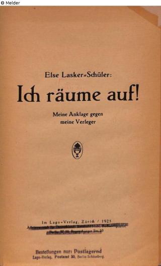 Fundmeldung Ich räume auf! Autor:in Lasker-Schüler, Else Verlag Lago-Verl. Objektart Buch Lost Art-ID631973