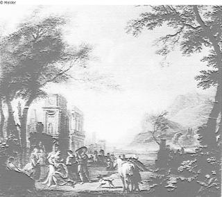 Fundmeldung Idealer Gartenprospekt mit Arkaden am Wasser Hersteller/Künstler:in Moucheron, Isaac de Objektart Zeichnung Material / Technikgezeichnet (Feder)Lost Art-ID220893