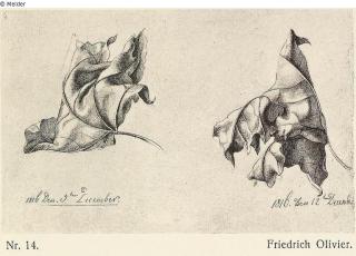 Suchmeldung Studienblatt mit zwei welken Blättern Hersteller/Künstler:in Olivier, Friedrich Objektart Zeichnung Material / Technikgezeichnet (Feder)Lost Art-ID585668