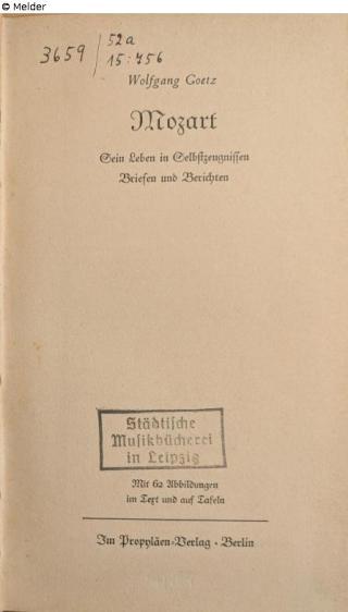 Fundmeldung Mozart. Sein Leben in Selbstzeugnissen und Berichten Mit 62 Abbildungen Autor:in Wolfgang Goetz Verlag Propyläen-Verlag Objektart Buch Lost Art-ID634328