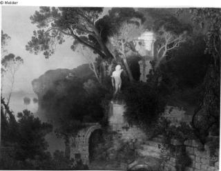 Fundmeldung Italienische Parklandschaft (Südlicher Park mit Statue am Meer) Hersteller/Künstler:in Schirmer, Johann Wilhelm Objektart Gemälde Material / TechnikÖl ; Holz / gemaltLost Art-ID565981