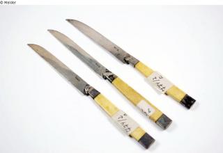 Fundmeldung 3 Obstmesser Hersteller/Künstler:in Sick (Stuttgart) Objektart Kunsthandwerk / -gewerbe Material / TechnikMetall (Silber) ; ElfenbeinLost Art-ID533609
