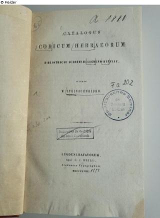 Fundmeldung Catalogus Codicum Hebraeorum Bibliothecae Academiae Lugduno-Batavae Autor:in Steinschneider, M. Verlag Brill Objektart Buch Lost Art-ID632692