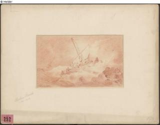 Fundmeldung Segelschiff in stürmischer See Hersteller/Künstler:in Storck, Abraham Objektart Zeichnung Material / TechnikPapier ; Rötel / gezeichnetLost Art-ID619370
