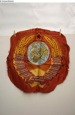 Fundmeldung Fahne Sowjetunion (Fragment, rund) Hersteller/Künstler:in Unbekannt Objektart Gebrauchs- / Raumtextilie Material / TechnikTextil / besticktLost Art-ID429770