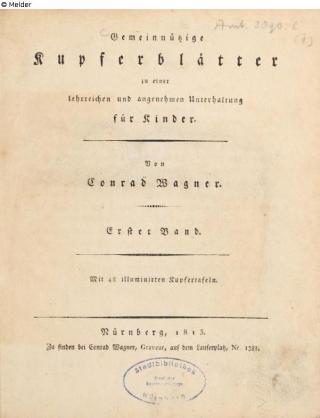 Fundmeldung Gemeinnützige Kupferblätter zu einer lehrreichen und angenehmen Unterhaltung für Kinder Bd. 1 Autor:in Wagner, Conrad Verlag Conrad Wagner Objektart Buch Lost Art-ID630903