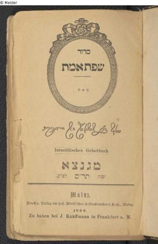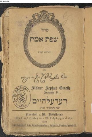Fundmeldung Siddûr Śefat emet: israelitisches Gebetbuch Autor:in Heidenheim, Wolf / dst: Kauffmann, Ignatz Verlag Wirth Objektart Buch Lost Art-ID612439