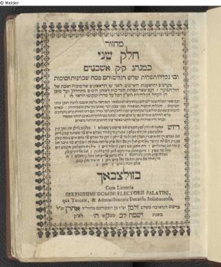 Fundmeldung Maḥzor: ke-minhag ḳ.ḳ. ha-ashkenazim / Ḥēleq 2: Sûkkôt, Pesaḥ we-Šāvûôt Verlag Hirsh ben Ḥayim Objektart Buch Lost Art-ID612434