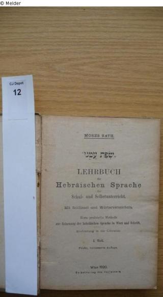 Fundmeldung Lehrbuch der Hebräischen Sprache für Schul- und Selbstunterricht. Mit Schlüssel und Wörterverzeichnis Autor:in Rath, Moses Verlag Selbstverlag d. Verf. Objektart Buch Material / TechnikgebundenLost Art-ID452531