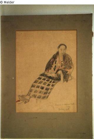 Fundmeldung Sitzende Frau Hersteller/Künstler:in Bichory (?) Objektart Zeichnung Material / TechnikBleistift ; Farbstift / gezeichnetLost Art-ID237725