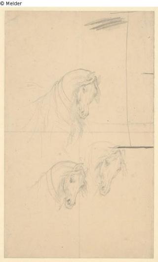 Fundmeldung Drei Studien eines Pferdekopfes (Studie zum Aquarell "Anbetung der Hl. Drei Könige“ [sogen. "Römische Krippe"]) Hersteller/Künstler:in Führich, Josef von Objektart Zeichnung Lost Art-ID476826