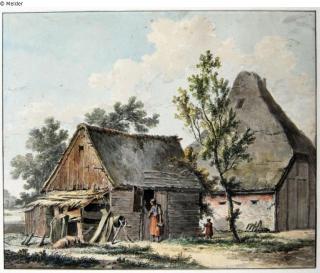 Fundmeldung Bauerngehöft mit Magd Hersteller/Künstler:in Barbiers, Pieter (der Jüngere) Objektart Grafik Material / TechnikGraphit ; Farbe mehrfarbig / gezeichnet (Pinsel) ; laviertLost Art-ID584015