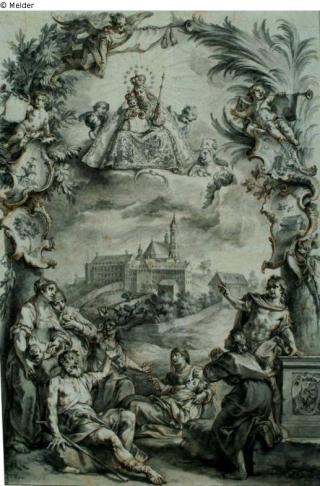 Fundmeldung Ansicht vom Kloster Andechs, mit den 3 Andechser Bluthostien Hersteller/Künstler:in Zimmermann, Johann Baptist Objektart Zeichnung Material / TechnikFarbe schwarz, braun, grau ; Papier / gezeichnet (Feder)...Lost Art-ID587168