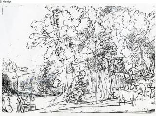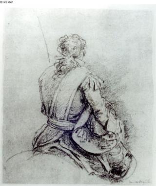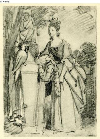 Farbe braun ; Papier bräunlich / gezeichnet (Feder)