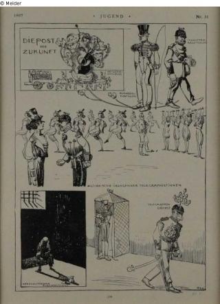 Fundmeldung Spottbild "Die Post der Zukunft" Hersteller/Künstler:in Idiez Objektart Druckgrafik Material / TechnikPapier / gedruckt (Holzschnitt)Lost Art-ID593030