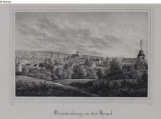 Fundmeldung Stadtansicht von Brandenburg an der Havel, rechts Station 7 der optischen Telegrafenlinie Berlin-Koblenz auf dem Marienberg Hersteller/Künstler:in Teichgräber, Heinrich Wilhelm Objektart Druckgrafik Material / TechnikPapier / gedruckt (Lithographie)Lost Art-ID593032