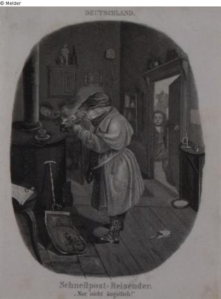 Fundmeldung Schnellpost-Reisender. Nur nicht ängstlich! Hersteller/Künstler:in Unbekannt Objektart Druckgrafik Material / TechnikPappe / gedruckt (Stahlstich)Lost Art-ID593038