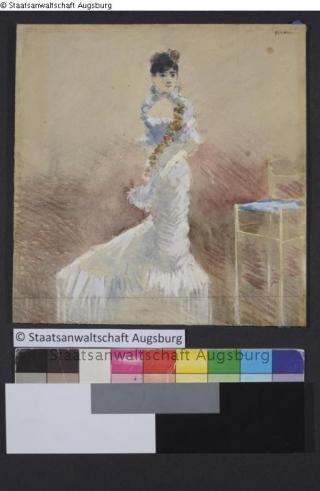 restituiert Fundmeldung Femme en robe du soir et une chaise (Jeune femme en blanc) / Dame in Abendkleid, neben einem Stuhl stehend (Junge Frau in Weiß) Hersteller/Künstler:in Forain, Jean-Louis Objektart Aquarell Material / TechnikWasserfarbe ; Karton / aquarelliertLost Art-ID478052