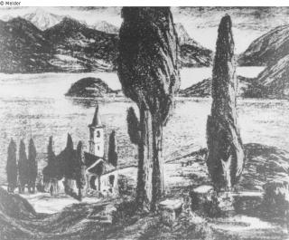 Fundmeldung Der Comersee (Bellagio) Hersteller/Künstler:in Scherer, Fritz Objektart Druckgrafik Material / Technikgedruckt (Lithographie)Lost Art-ID614795