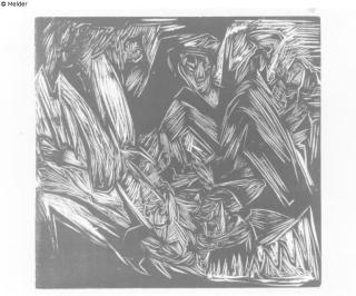 Fundmeldung Absaloms Tod Mappe "Absalom" mit 7 Holzschnitten und einem farbigem Titelholzschnitt, Blatt 6 Hersteller/Künstler:in Kirchner, Ernst Ludwig Objektart Druckgrafik Material / Technikgedruckt (Holzschnitt)Lost Art-ID628157
