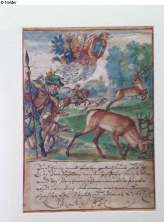 restituiert Fundmeldung Hirschjagd mit Wappen des Caspar Sayller von Augsburg Hersteller/Künstler:in Unbekannt Objektart Aquarell Material / TechnikWasserfarbe ; Papier / aquarelliert ; gehöht goldLost Art-ID630512