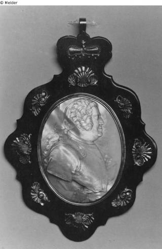 Suchmeldung Porträtmedaillon Kurfürst Friedrich August II. von Sachsen Hersteller/Künstler:in Graefenstein, G. Z. Objektart Kunsthandwerk / -gewerbe Material / TechnikPerlmutt ; Schildpatt ; Metall (Silber) / geschnitten...Lost Art-ID210617