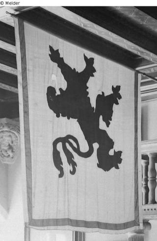 Suchmeldung Fahne (Viertelfahne) Löwe gelb Objektart Gebrauchs- / Raumtextilie Material / TechnikTextil (Seide) / genähtLost Art-ID5000004479