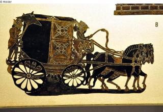 Fundmeldung Pferdegeschirr Hersteller/Künstler:in Unbekannt (Französisch) Objektart Kunsthandwerk / -gewerbe Material / TechnikLeder ; Metall (Bronze) / gesteppt ; vergoldetLost Art-ID518880