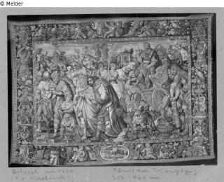 Fundmeldung Römischer Triumphzug Hersteller/Künstler:in Unbekannt (Brüssel (Maelsack (?), F.v.)) Objektart Gebrauchs- / Raumtextilie Material / TechnikTextil (Wolle) / BildwirkereiLost Art-ID530521