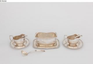restituiert Fundmeldung Saucière mit Untersatz und Schöpfer Hersteller/Künstler:in Unbekannt Objektart Gefäß Material / TechnikMetall (Silber)Lost Art-ID453615