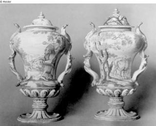 Suchmeldung Zwei zweihenklige Vasen Hersteller/Künstler:in Unbekannt (Italienisch (Castelli)) Objektart Gefäß Material / TechnikKeramikLost Art-ID526659