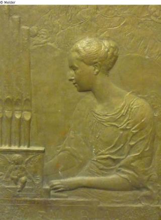 Fundmeldung Maria (Frau vor Orgel) Hersteller/Künstler:in Bärwald Objektart Kunsthandwerk / -gewerbe Material / TechnikMetall (Kupfer) ; Metall (Messing) [?] / getriebenLost Art-ID521711
