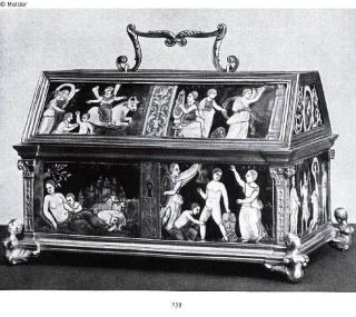 Suchmeldung Schmuckkästchen Hersteller/Künstler:in Unbekannt (Französisch) Objektart Kunsthandwerk / -gewerbe Material / TechnikMetall (Kupfer) ; Emaille ; Metall (Bronze)Lost Art-ID428323