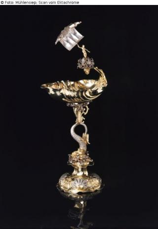 Fundmeldung Muschelpokal Hersteller/Künstler:in Baur, Hans Ludwig Objektart Gefäß Material / TechnikMetall (Silber) / teilvergoldetLost Art-ID573967