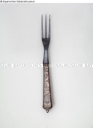 Fundmeldung Gabel, Griff mit Jagdszenen und dänischem Königswappen Objektart Kunsthandwerk / -gewerbe Material / TechnikMetall (Silber) ; Metall (Eisen) / graviertLost Art-ID570398