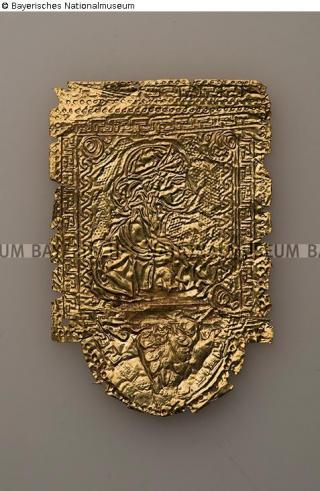 Fundmeldung Zungenförmige Goldapplike Objektart Kunsthandwerk / -gewerbe Material / TechnikMetall (Gold) / geprägtLost Art-ID570451